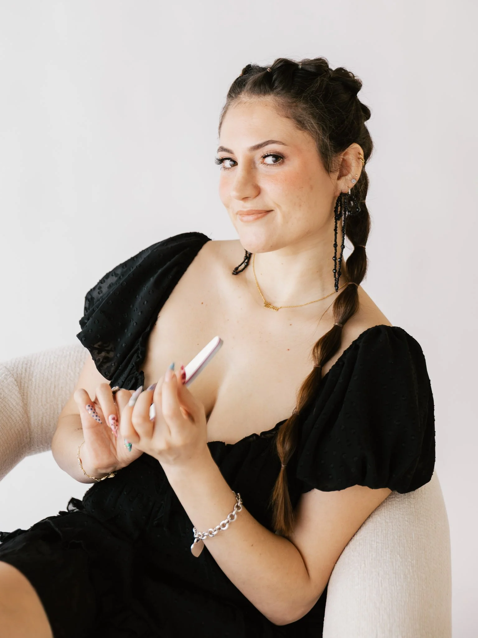 I guide each session with calm direction and a thoughtful creative framework, helping translate your ideas, references, and instincts into something cohesive. That’s the work I do best. The process is structured enough to feel intentional, but relaxed enough that you can stay fully present in the moment.